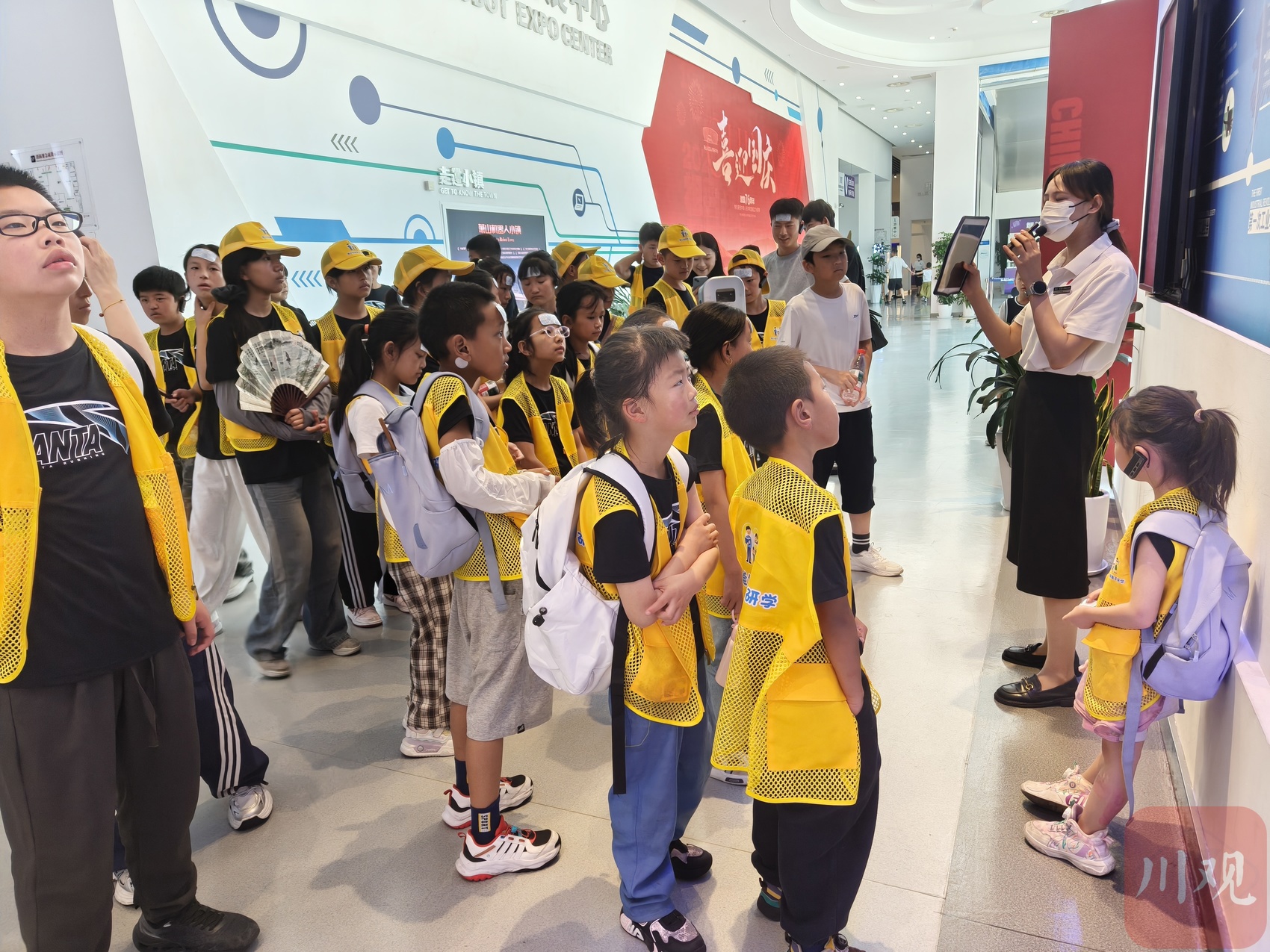 行程的最后一站是机器人小镇,这里的智能制造让孩子们大开眼界。通过趣味十足的人机互动体验,他们在“看、问、玩”中感受到了科技的魅力,心中种下了追逐科学梦想的种子。