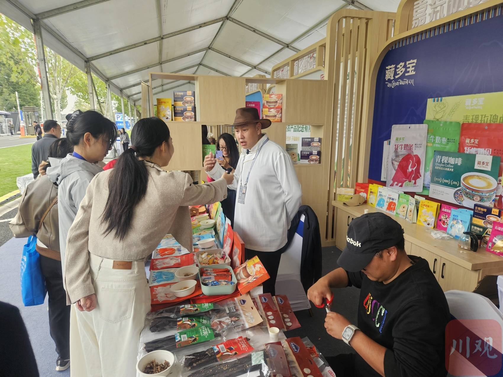 展销期间,松潘展台上牛肉干、沙棘制品、青稞系列产品、牦牛奶贝以及特色蜂蜜酒等高原特产整齐陈列,凭借过硬的品质、独特的风味以及原生态的高原魅力,吸引了众多参会嘉宾和往来游客驻足品鉴、踊跃选购。