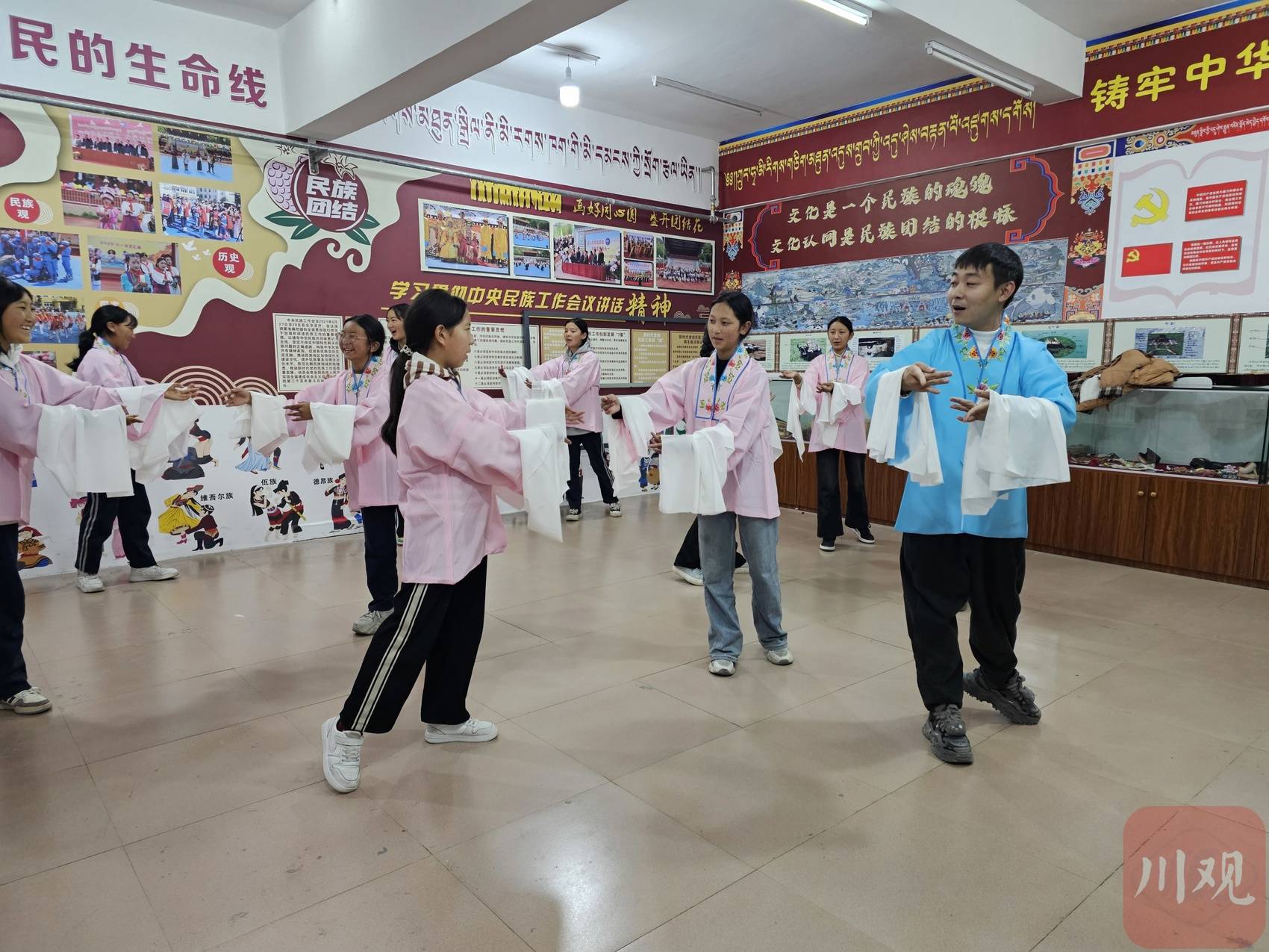 “我们把越剧带到松潘课堂,是希望在学生心中种下戏曲的种子,也希望他们能将这门艺术传承发扬下去。”孔海烽介绍,教学内容不仅涵盖经典唱段教唱、行当体验,还通过历史脉络讲解、经典剧目赏析,引导学生理解“家国情怀”“才子佳人”背后的中华美学精神。