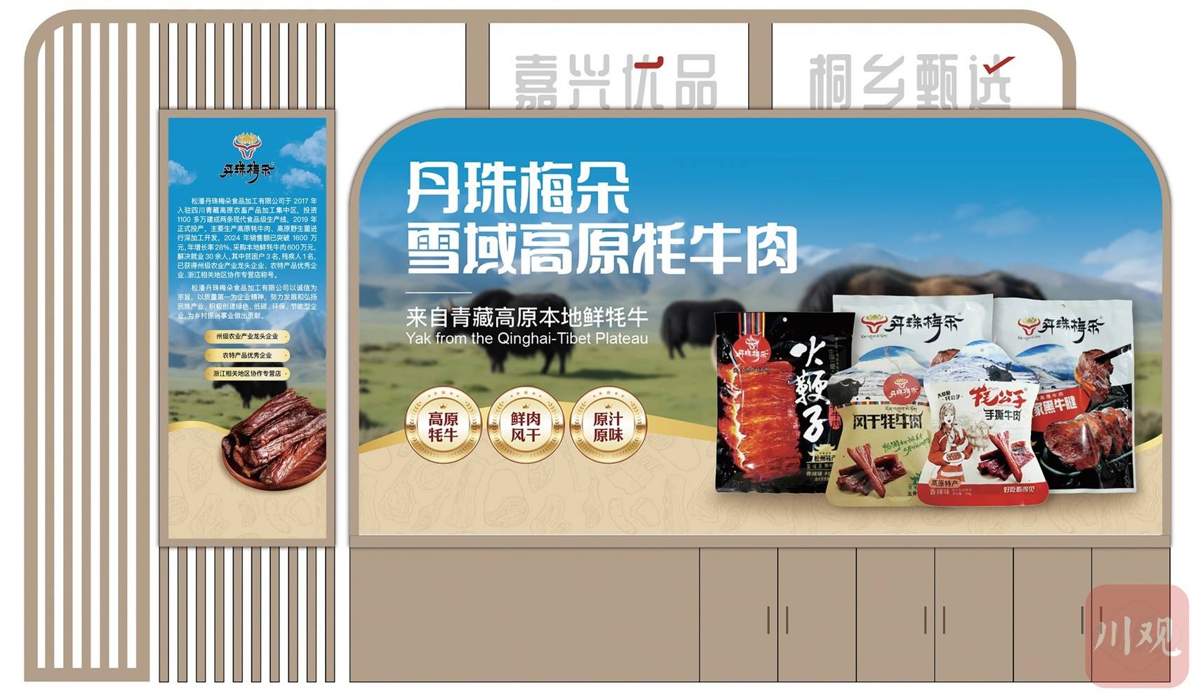 赵磊介绍,此次出征乌镇的企业阵容强大,包括藏多宝食品加工有限公司、松潘丹珠梅朵食品加工有限公司、阿坝州一牦食品有限公司等企业,产品涵盖牦牛肉制品、青稞衍生品等特色品类。同时,藏多宝、丹珠梅朵等企业在浙江的线下门店,还将保障产品的供应需求。