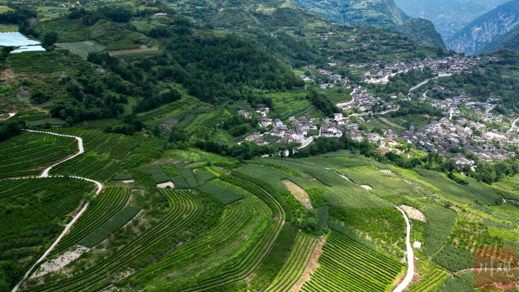 俯瞰九寨沟葡萄农业产业园区和千户藏寨。
