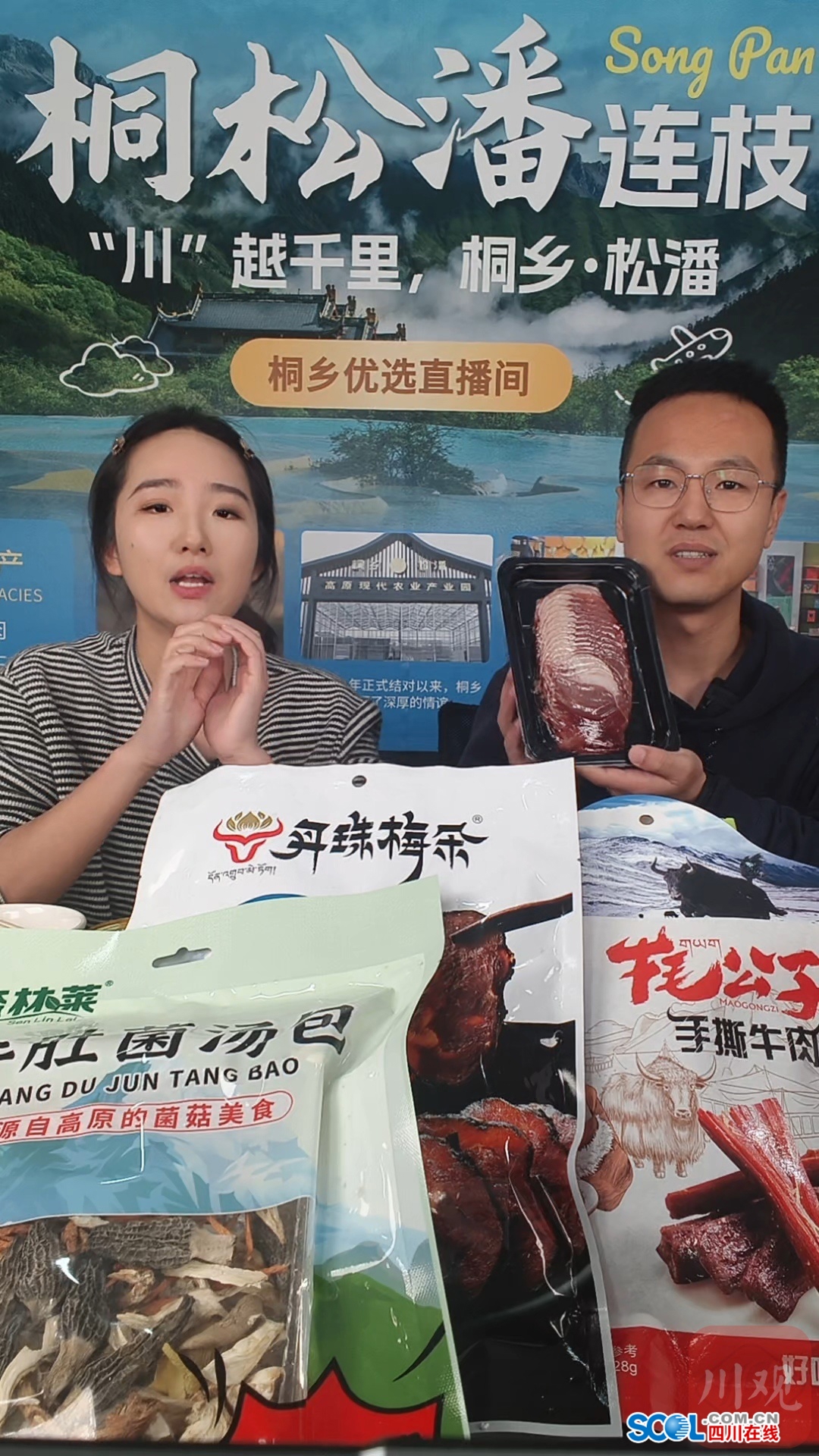 今年1月和2月,桐乡市传媒中心在“桐乡优选”直播间,开启了两场松潘县特色产品专场直播,高原牦牛肉组合装、雪山梨沙棘原浆果糕、松茸菌汤包、羊肚菌汤包、牦牛奶枣等松潘特色产品悉数登场。
