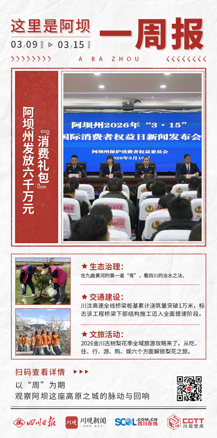 3月9日至15日这一周,阿坝州消费惠民、生态守护、交通提速、文旅提质多点出彩,高原春日图景鲜活生动——