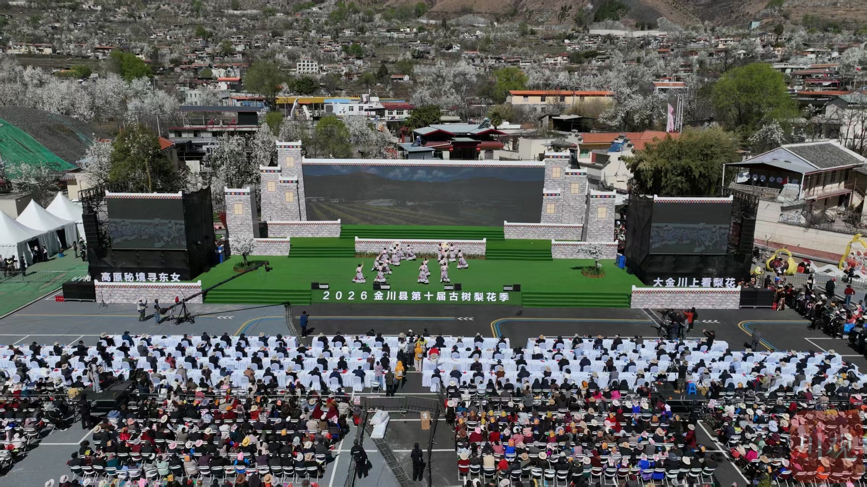 三月金川,河谷两岸梨花似雪,与蓝天、梯田、碉楼相映成画。3月21日,在这幅“醉美梨花源”图景中,金川县第十届古树梨花季在沙耳乡梨花音乐广场启幕,八方游客齐聚“中国雪梨之乡”,邂逅高原梨花“春潮”,感受自然之美与人文之韵。