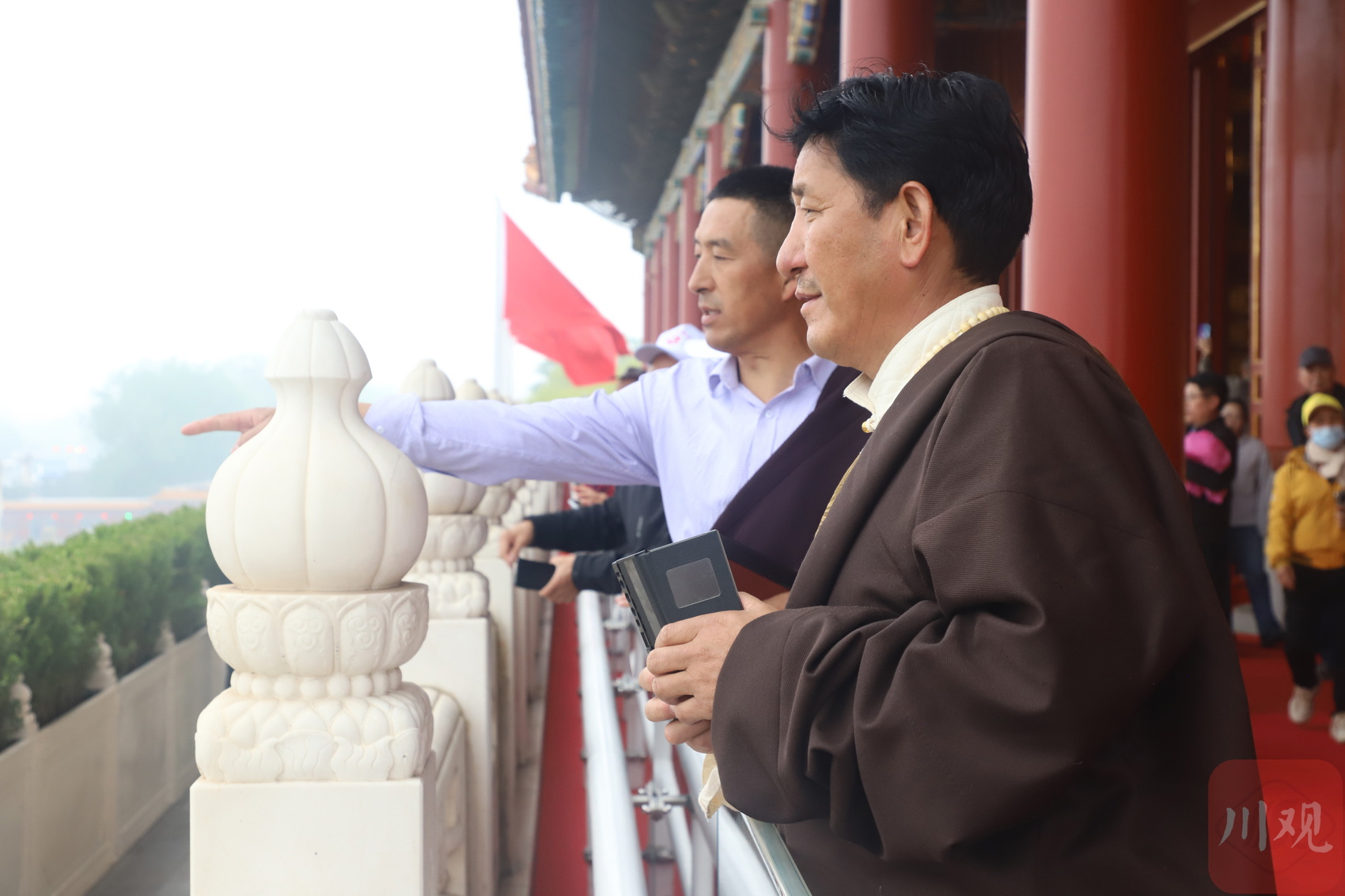 一些老支书还特地穿上藏装,川主寺镇寒盼村离任党组织书记彭措就是其中一位,这对他有着特殊意义。彭措所在的川主寺镇,是红军长征胜利纪念总碑所在地。他说,今年是红军长征胜利90周年,革命先烈的付出以及党的民族政策,让家乡发生了巨大变化。因此,他非常想到北京看升国旗仪式。